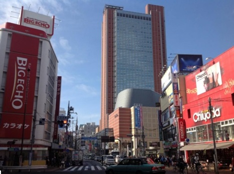 再開発事業の一環で建設された複合ビル「キャロットタワー」は三軒茶屋のランドマーク的な存在。