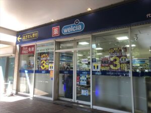 Welcia A pharmacy located in Daikanyama Address with Peacock and Seria. MAP