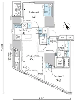 | 専有面積 | 59.76m² |