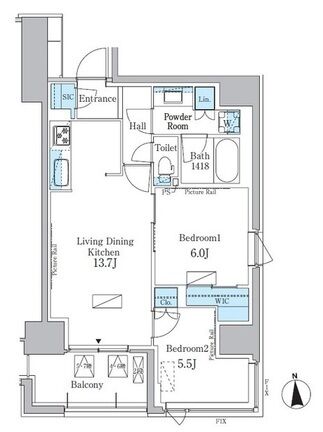 専有面積 60.08m² (646ft²)