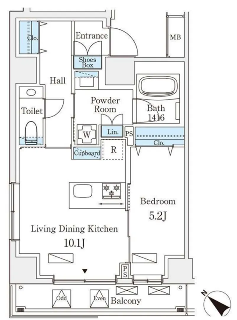 専有面積 45.17m² (486ft²)