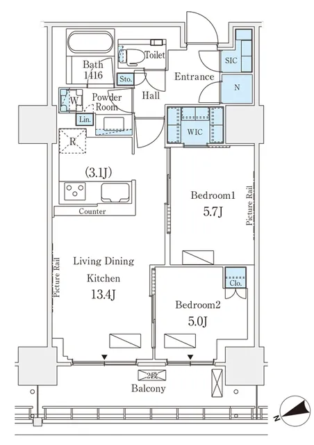 | 専有面積 | 58.26m² (627ft²) |