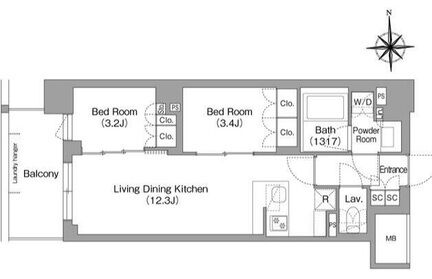 専有面積 45.2m² (486ft²)