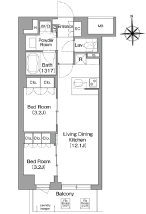 専有面積 45.2m² (486ft²)
