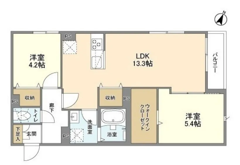 専有面積 53.84m² (579ft²)
