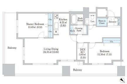 専有面積 85.98m² (925ft²)