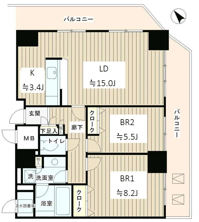 | 特徴 | フローリング、エアコン、BS端子、CATV、CS、インターネット、オートロック、宅配BOX、駐輪場、バイク置き場、バルコニー、楽器相談、ペット不可、高層階 |
