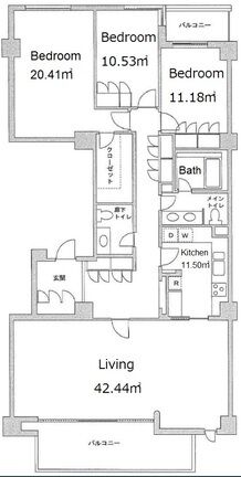 C607 5DK,5LDK 309.68m² 賃貸 1,350,000円 3ヶ月 なし 6階