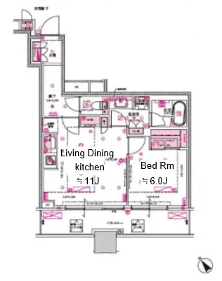 1008 1DK,1LDK 44.9m² 賃貸 372,000円 2ヶ月 1ヶ月 10階