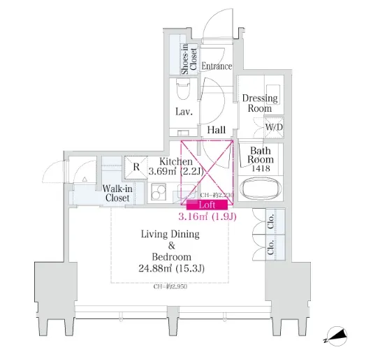 | 専有面積 | 46.1m² (496ft²) |