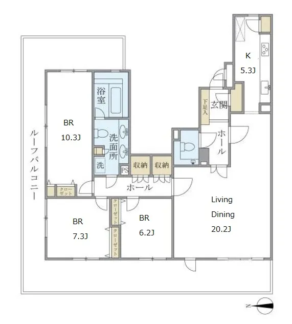 専有面積 114.93m² (1237ft²)
