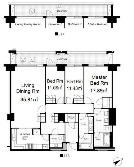 | 専有面積 | 141.99m² (1528ft²) |