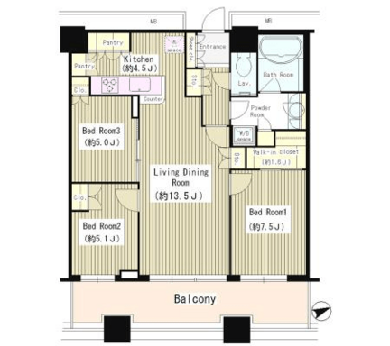 特徴 BS端子、CATV、CS、フローリング、エアコン、床暖房、オートロック、宅配BOX、バルコニー、楽器相談、ペット不可、駐輪場、高層階