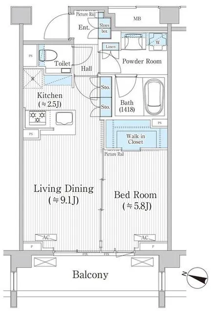 専有面積 44.14m² (475ft²)