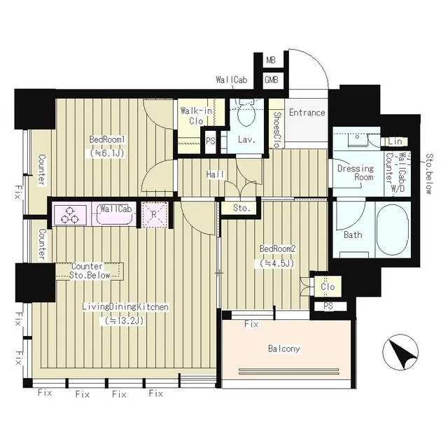 専有面積 58.2m² (626ft²)