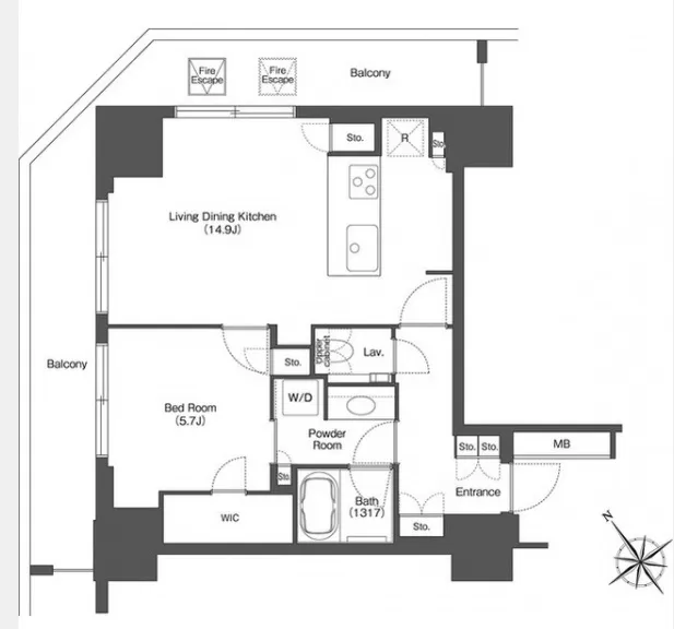 | 専有面積 | 53.65m² (577ft²) |