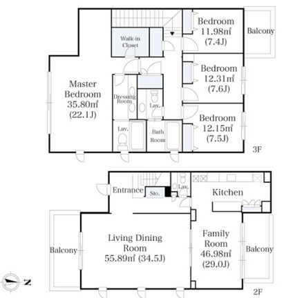 間取り 4DK,4LDK +2浴室 +1ファミリールーム