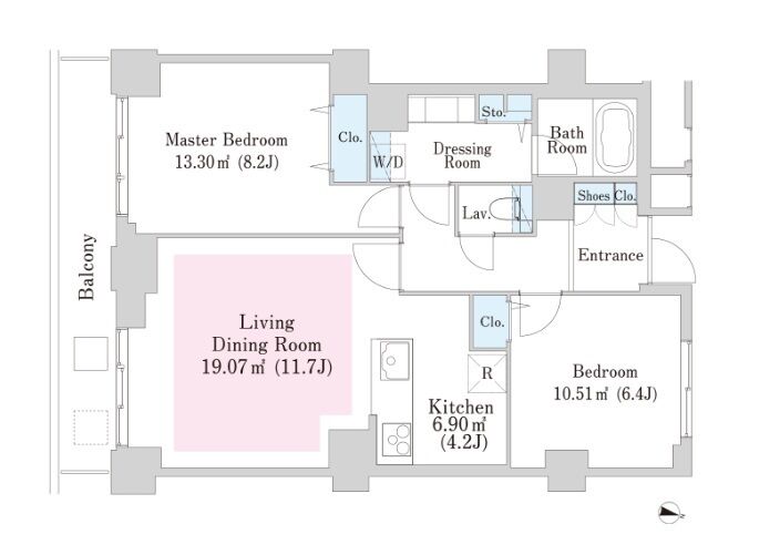 専有面積 70.36m² (757ft²)