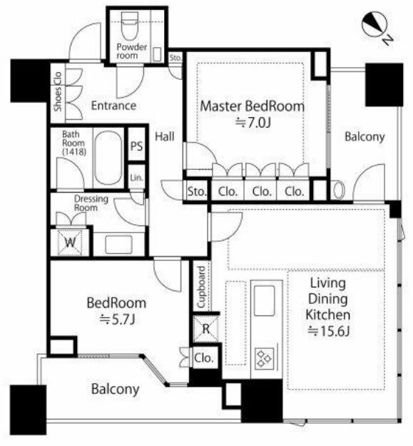 1401 2DK,2LDK 70.14m² 賃貸 730,000円 2ヶ月 1ヶ月 14階