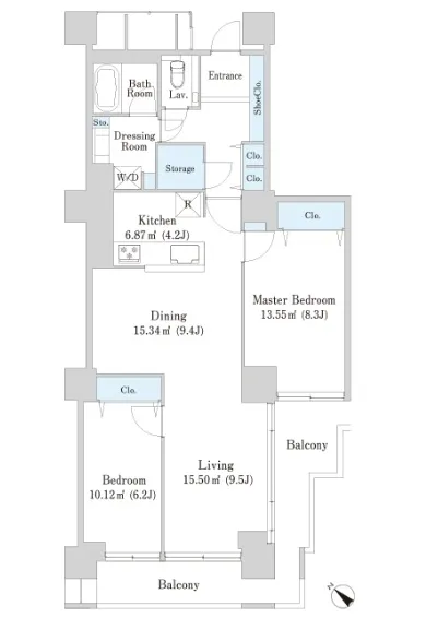 1222 2DK,2LDK 85.19m² 賃貸 670,000円 2ヶ月 なし 12階