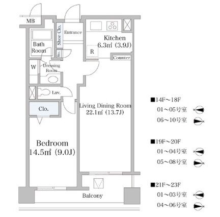 | 1804 | 1DK,1LDK | 63.45m² | 賃貸 | 298,000円 | 2ヶ月 | なし | 18階 | |