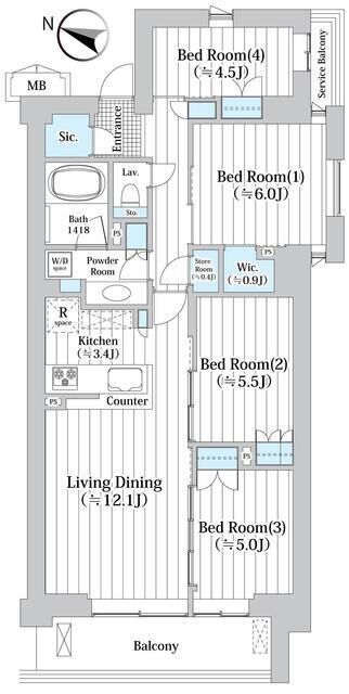 Floor Plan 4 Bedrooms +1Bath