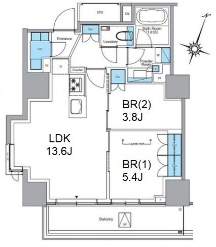 | 1802 | 2 Bedrooms | 52.2m² | Rent | 383,000yen | 2months | None | 18th floor | |