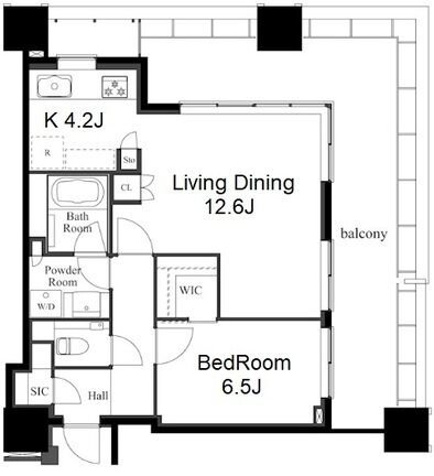 1613 1 Bedroom 57.67m² Rent 450,000yen 2months 1month 16th floor
