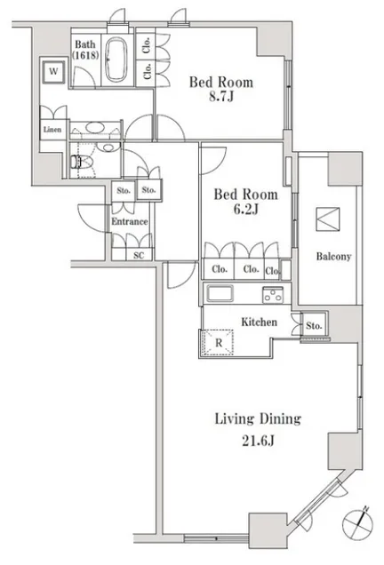 1102 2 Bedrooms 81.51m² Rent 430,000yen 2months 1month 11th floor