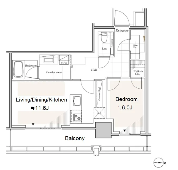 | 1104 | 1 Bedroom | 49.59m² | Rent | 390,000yen | 4months | None | 11th floor | |