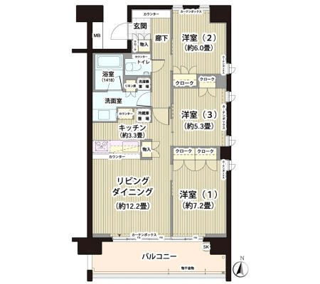 103 3 Bedrooms 77.49m² Rent 330,000yen 1month 2months 1st floor