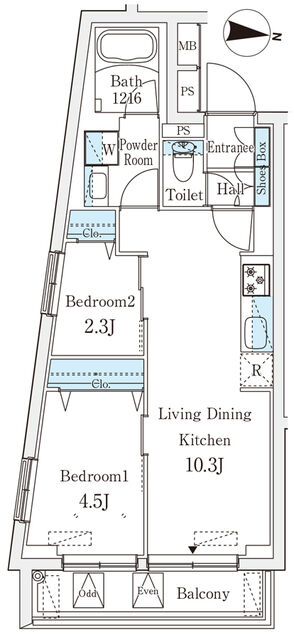 Floor Plan 2 Bedrooms +1Bath