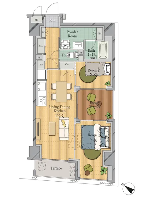 | 406 | 2 Bedrooms | 55.95m² | Rent | 223,000yen | 1month | 2months | 4th floor | |