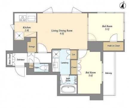 1101 2 Bedrooms 56.3m² Rent 335,000yen 2months None 11th floor