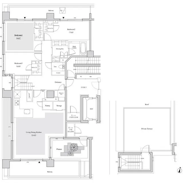 701 3 Bedrooms 75.14m² Rent 610,000yen 2months 1month 6th floor
