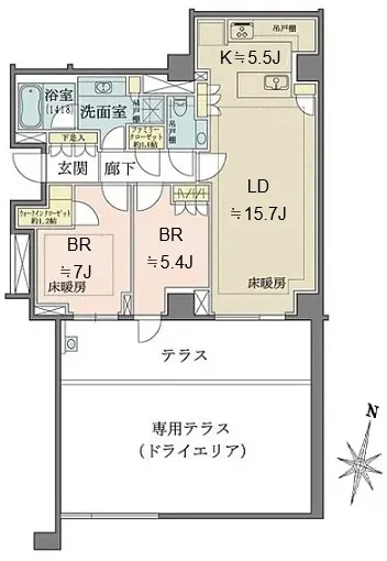 201 2 Bedrooms 75.31m² Rent 570,000yen 1month 1month 1st floor