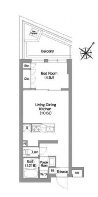 405 2 Bedrooms 44.07m² Rent 242,000yen 2months None 4th floor