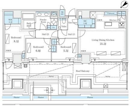 703 3 Bedrooms 100.91m² Rent 1,400,000yen 1month 1month 7th floor