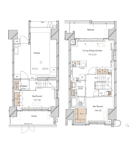| 103 | 2 Bedrooms | 69.21m² | Rent | 440,000yen | 2months | 1month | 1st floor〜2nd floor | |