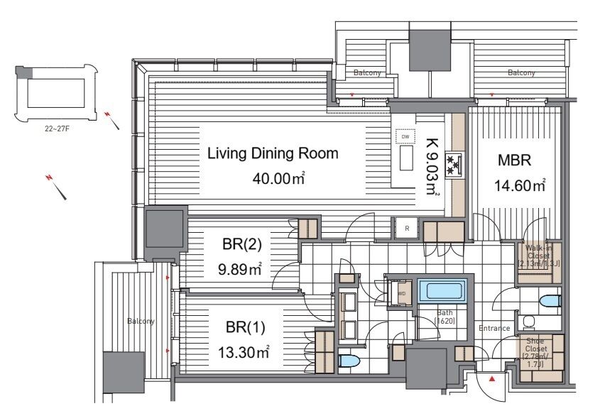 | 2701 | 3 Bedrooms | 127.02m² | Rent | 1,460,000yen | 4months | None | 27th floor | |