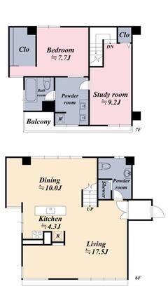 Floor Plan 1 Bedroom +2Bath +1Study room