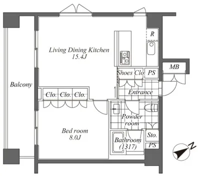 316 1 Bedroom 37.29m² Rent 288,000yen 2months None 3rd floor