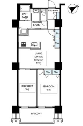 Floor Plan 2 Bedrooms +1Bath