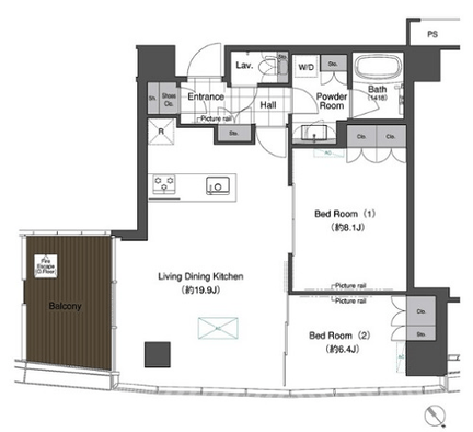 | 1411 | 2 Bedrooms | 88.78m² | Rent | 780,000yen | 2months | None | 14th floor | |