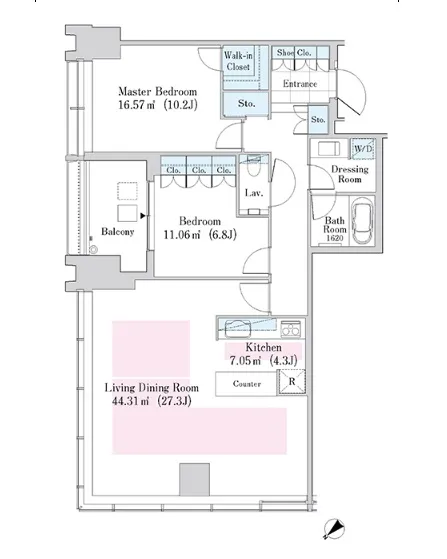 | 3316 | 2 Bedrooms | 107.57m² | Rent | 990,000yen | 2months | None | 33rd floor | |