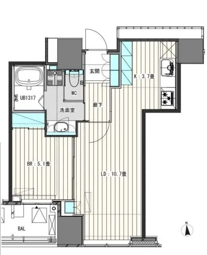 805 1 Bedroom 43.94m² Rent 322,000yen 2months 1month 8th floor