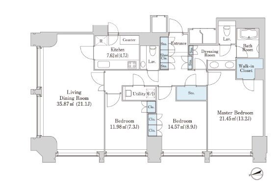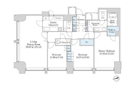 2713 3 Bedrooms 130.88m² Rent 1,390,000yen 2months None 27th floor