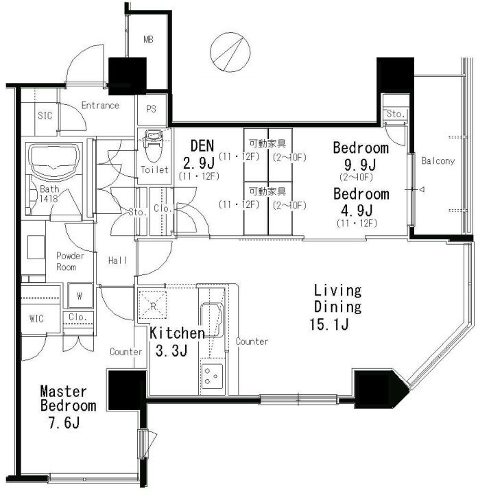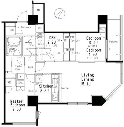 | 1103 | 3 Bedrooms | 84.96m² | Rent | 650,000yen | 2months | 1month | 11th floor | |