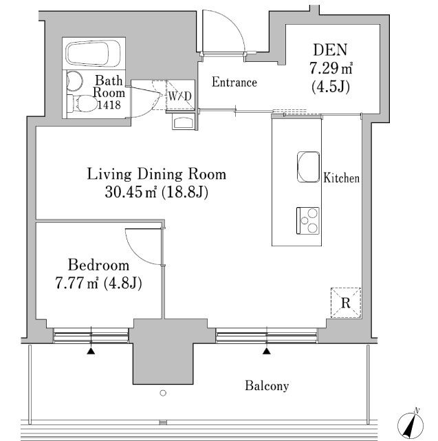 Floor Plan 1 Bedroom +1Bath +1DEN