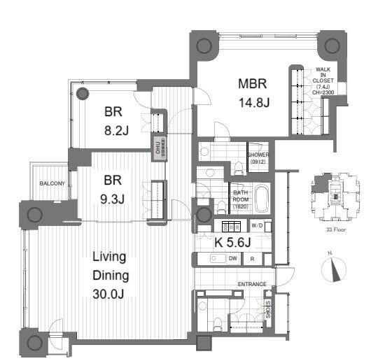 C3306 3 Bedrooms 166.62m² Rent 2,340,000yen 4months None 33rd floor